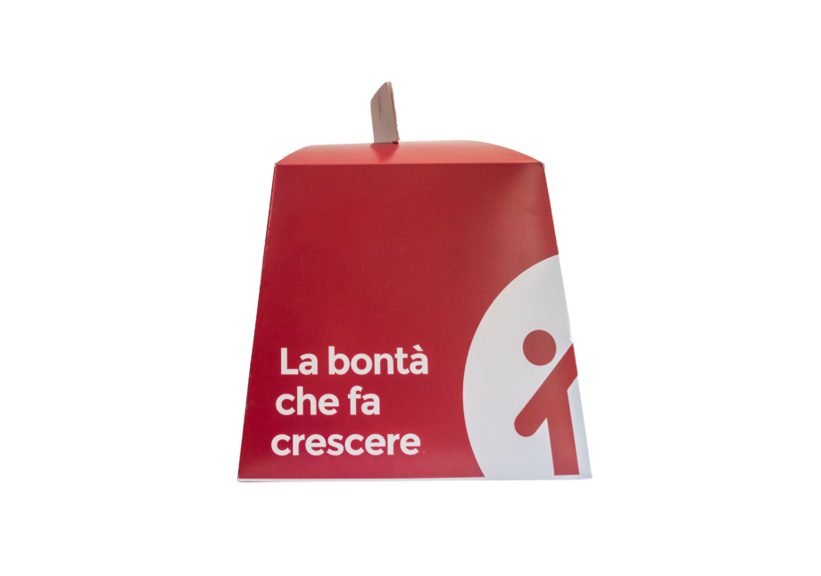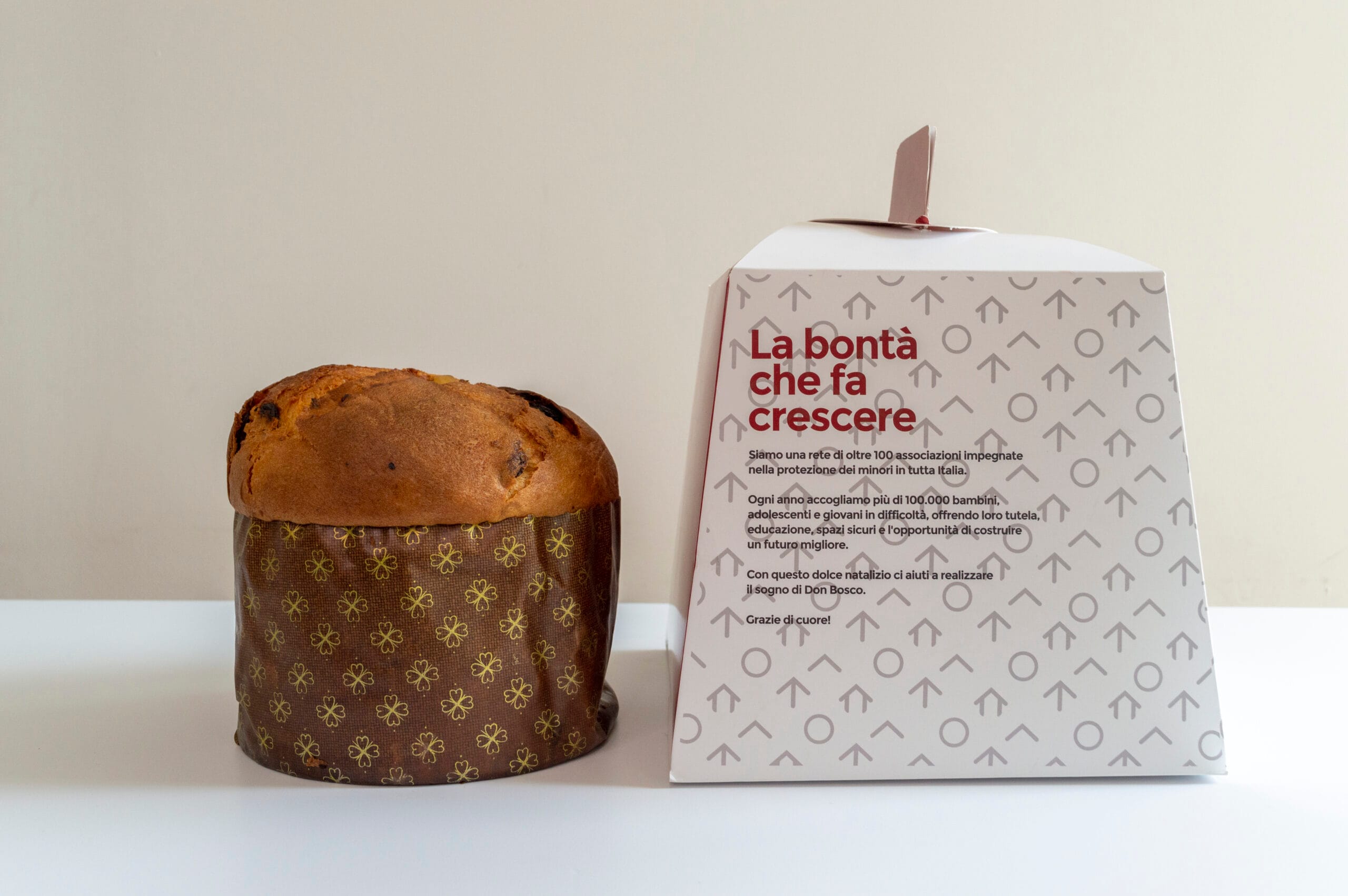 Panettone classico alto a lievitazione naturale, con uvetta, canditi e materie prime di altissima qualità. Confezionato con un nuovissimo astuccio Salesiani per il sociale.